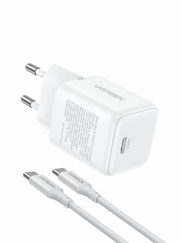 Зарядное устройство на 1C, 30W, QC4.0/PD3.0, Gan X + Кабель 1м, Белый, X513 (65013) UGREEN