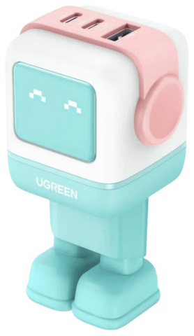 Зарядное устройство Ugreen CD361 Nexode Robot GaN Tech Fast Charger оснащено двумя портами USB-C и одним портом USB-A, что позволяет быстро заряжать телефон, планшет и другие устройства, а также ноутбук с разъёмом USB-C от одного зарядного устройства. Уникальный дизайн симпатичного робота с экраном делает процесс зарядки необычным. Компактный размер и лёгкий вес обеспечивают максимальную мобильность.